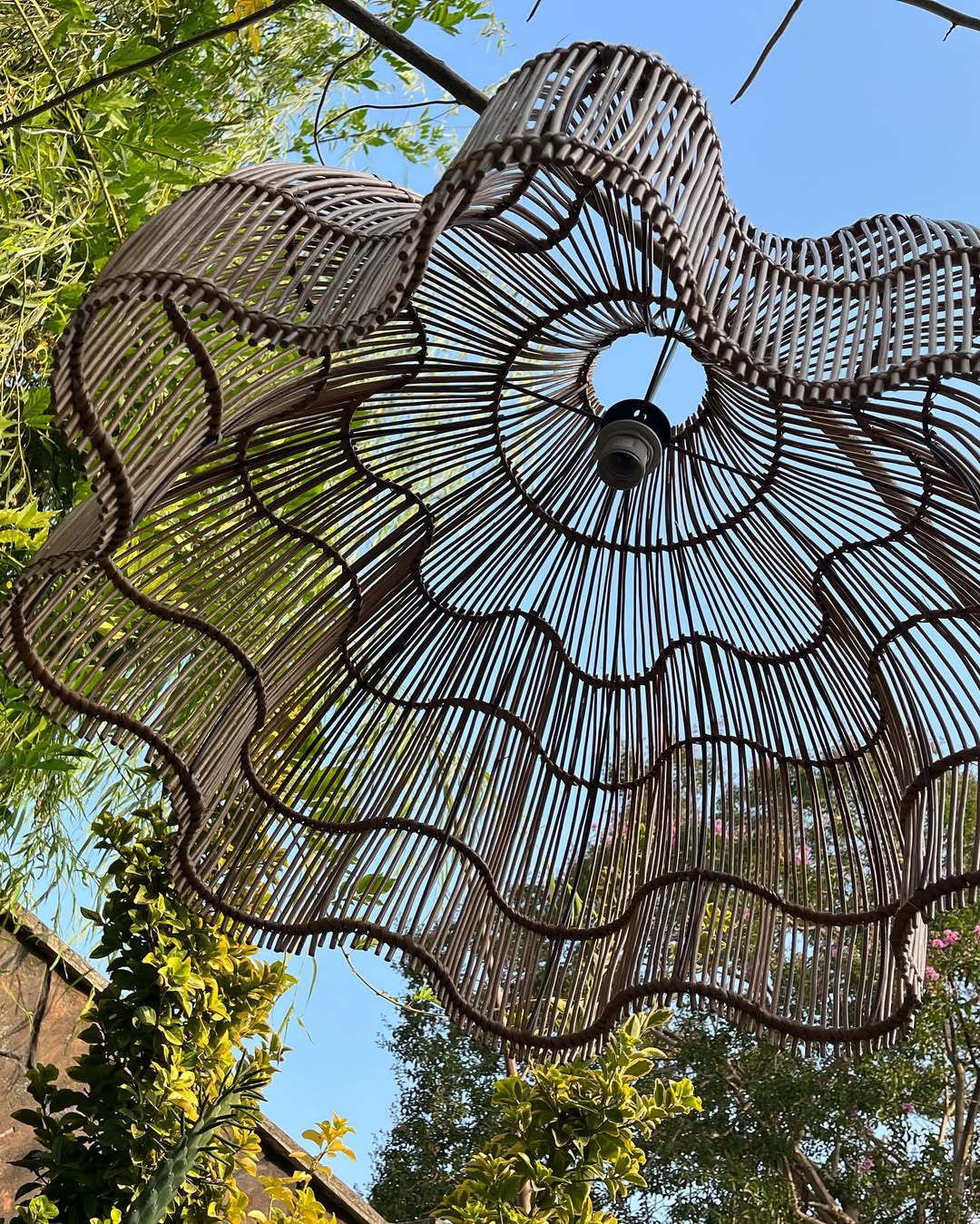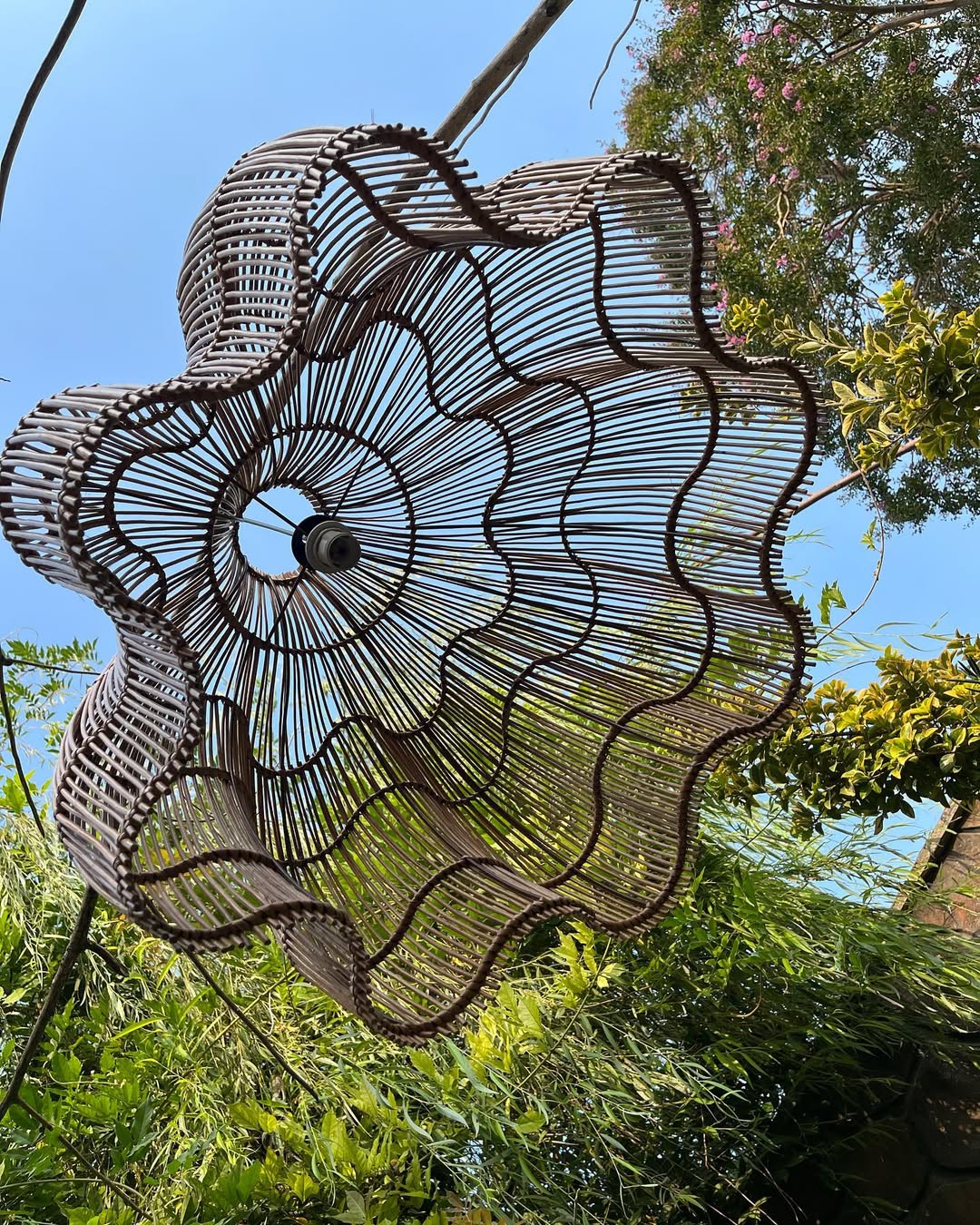 لوستر حصیری شقایق فرمفلز بافته شده با شاخه درخت بید ملایر قطر ۷۰س قی//مت مناسب پذیرایی /کافه /رستوران برای سبک بوهمین