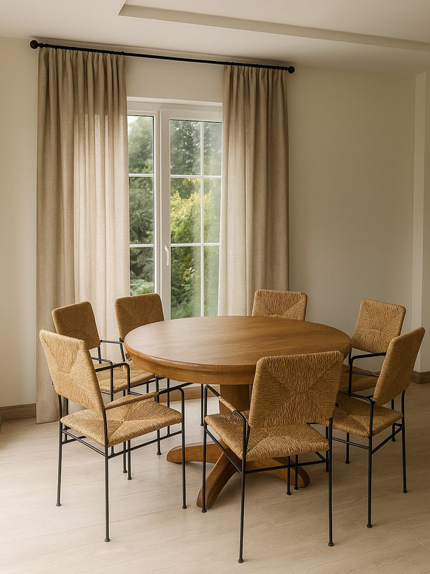 ترکیبی از طبیعت، هنر دست و طراحی مدرن این ست صندلی حصیری با ساختاری مقاوم از فلز مشکی مینیمال و نشیمن و پشتی دستبافت از الیاف طبیعی حصیر، جلوهای گرم و دلنشین به هر فضا میبخشد. طراحی آن الهامگرفته از سبک بوهو مدرن است؛ سبکی که سادگی، بافت طبیعی و حس آرامش را در کنار هم قرار میدهد.