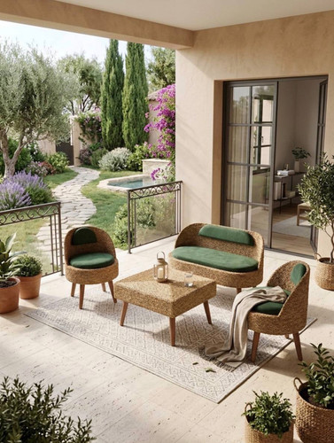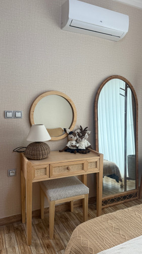 نیمکت حصیری ترکیب چوب و حصیر سایز ۹۰در۴۰در۴۵