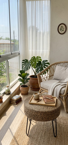 صندلی کانتر حصیری با ترکیب چوب طبیعی